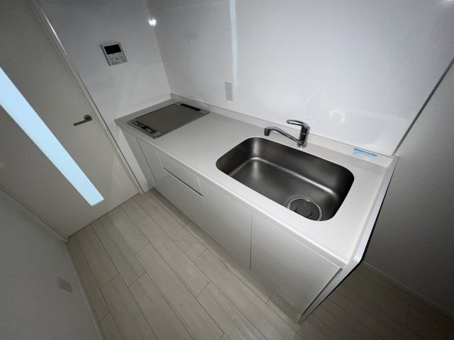キッチンは大きめです。シンク、調理スペースも十分な広さです。コンロもIH2口で料理がしやすいですね。