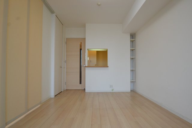 初めにリビングルームのご紹介です。広さは9.1帖のカウンターキッチンタイプのリビングです。大手管理会社の物件ですので毎回リフォームをキッチリしてくれるので内装は綺麗でいいですよね。丁度いい広さでお好きな家具が配置しやすい間取りが人気のポイントですね。