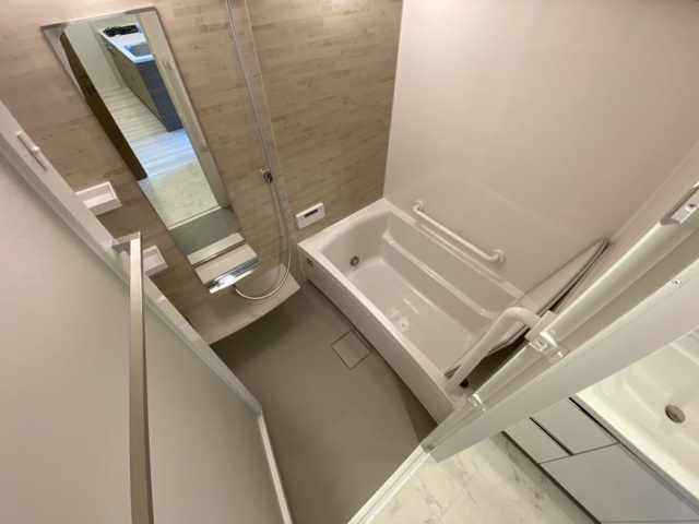 高級感があるお風呂です!自動湯張り・追炊き・浴室乾燥機付きと充実の設備内容です!お手入れしやすい中央排水口タイプです!